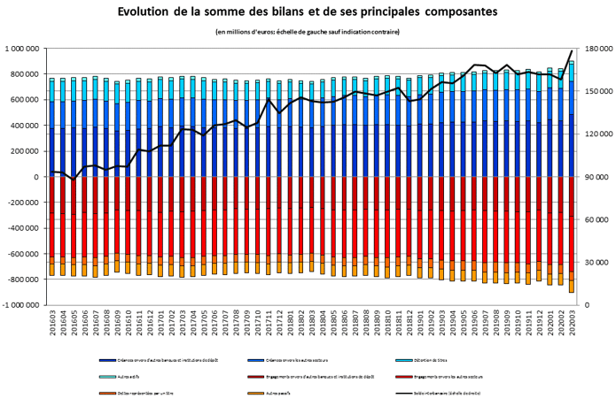 Au niveau des dépôts du secteur non bancaire résident, une augmenté de 19 065 millions d’euros, (soit de 7,3 %) a été enregistrée entre février et mars 2020. En un an, ils ont grimpé de 32 547 millions d’euros, soit+ 13,2 %.
