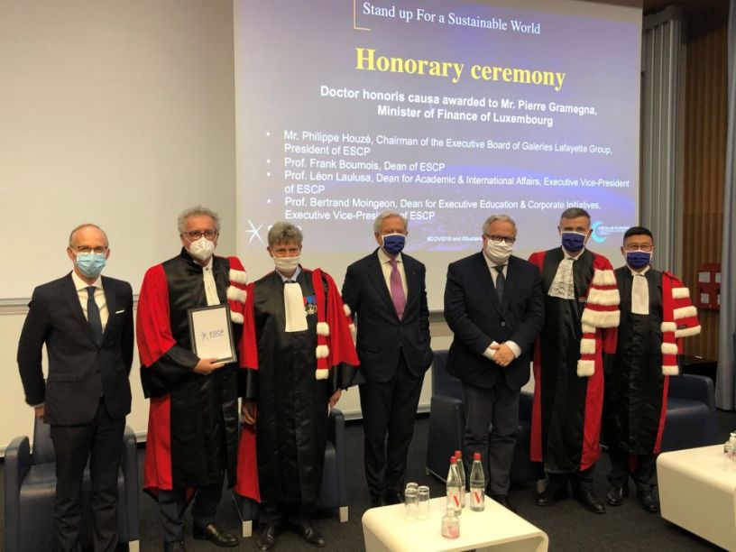 A l’occasion d’une conférence donnée sur l’avenir de l’Union européenne à l’École supérieure de commerce de Paris (ESCP), le ministre des Finances Pierre Gramegna s’est vu décerner ce lundi le diplôme honorifique de docteur honoris causa. Il a eu un un échange de vues avec Laurence Boon, chef économiste de l’OCDE, sur la relance et les perspectives économique post-COVID-19. Elle a souligné que l’OCDE table sur un repli de 4,5% du PIB mondial cette année avant un rebond de 5% en 2021.