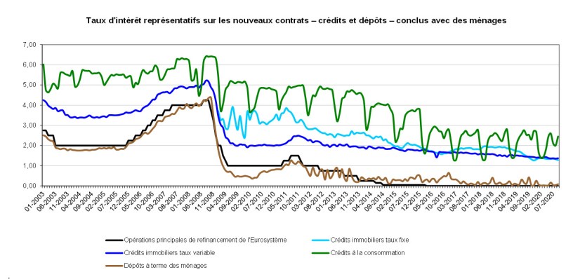 Le taux d’intérêt fixe a reculé de 4 points de base sur un mois « pour s’inscrire à 1,28 % durant le mois de septembre 2020 », dit la Banque centrale. Le volume mensuel des créances nouvellement accordées a augmenté « de 84 millions d’euros en comparaison mensuelle pour atteindre 533 millions d’euros ». Sur un an, le taux a chuté de 12 points de base tandis que le montant des crédits accordés a augmenté de 86 millions d’euros.
