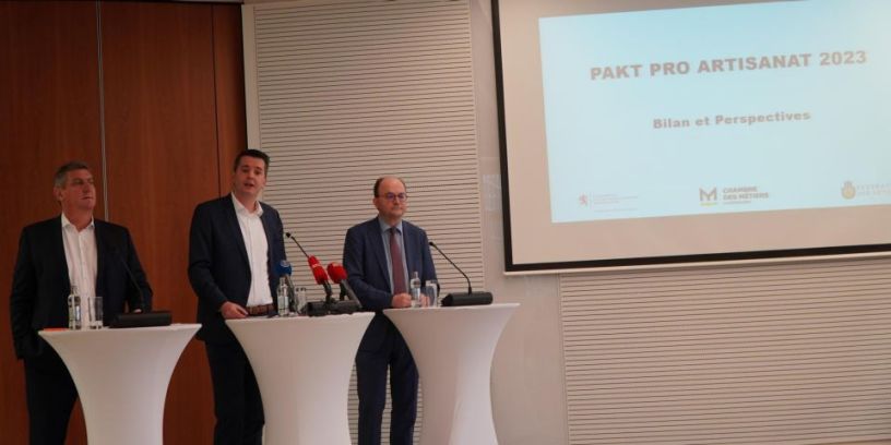 Lex Delles, le ministre des Classes moyennes, Tom Wirion, directeur de la Chambre des métiers, et Romain Schmit, secrétaire général de la Fédération des artisans, ont présenté le « Pakt Pro Artisanat 2023« . Lancé en 2017 en tant qu’approche cohérente et concertée, associant la Direction générale des classes moyennes, la Chambre des métiers et la Fédération des artisans, ce dispositif stratégique a été à la base de maintes initiatives innovatrices soutenant les entreprises artisanales. Il se focalise autour de quatre axes de travail dont la transmission d’entreprises.