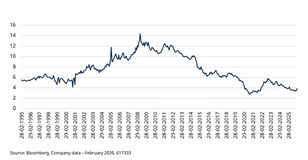 For oil producer equities, this combination of constrained supply, slower responsiveness and strengthening demand supports a more durable pricing environment. Earnings are highly sensitive to oil prices; balance sheets are stronger and leverage lower than during the previous cycle. As touched on previously, energy equities remain underrepresented in global indices. If capital allocation to the sector increases during a sustained investment cycle, stronger earnings and improved sentiment could support share prices.